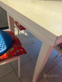 Vendo tavolo colore bianco allungabile con segni di usura ma ancora funzionante.
