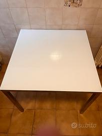 Tavolo quadrato Torsby in metallo cromato e ripiano vetro bianco satinato.