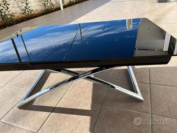 Struttura in acciaio cromato e piano in vetro temperato nero (come da immagine)