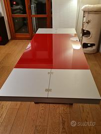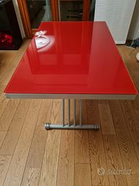 Tavolo in vetro retroverniciato rosso OZZIO Italia , misure da chiuso 75x120 cm, tutto aperto 75x197 cm. Meccanismo molto facile prodotto di ottima qualità, molto stabile, solo qualche piccolo segno per il resto in buono stato.
