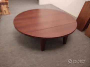 Tavolo tondo/semi rettangolare utilizzabile come tavolino da salotto (altezza cm. 37) o tavolo da pranzo (altezza cm. 75). Il tavolo ha un sistema meccanico servoassistito da due molle che senza sforzo permette di sollevare o abbassare il piano superiore. Lo stesso può essere mantenuto semi-rettangolare (dim. 75x120) o ruotato per ottenere il tondo (diametro 120 cm.)