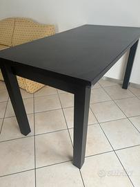 Vendo tavolo allungabile da 6 a 8 posti. Il tavolo è di colore marrone molto scuro (quasi nero alla vista). Presenta due piccoli difetti: in alcuni punti il legno si è leggermente staccato, ma resta comunque stabile e funzionale. Prezzo: 80€