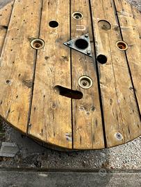 •Tavolo in legno massiccio (ex bobina per cavi), diametro generoso, stabile e resistente.