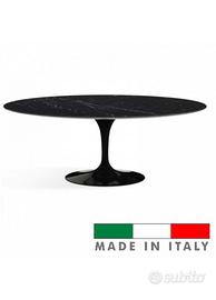 Tavolo ovale Tulip con base (piedistallo) in fusione di alluminio laccato bianco o nero e piano in marmo nero marquinia