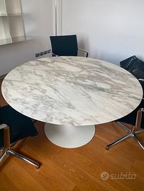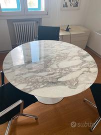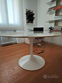 Vendo tavolo Tulip del designer Eero Saarinen, brand Knoll. Il tavolo è rotondo, diametro 137 cm, base in fusione di alluminio, scocca in fibra di vetro e rivestimento in Rilsan, piano in marmo. Il tavolo è stato acquistato nel 2008, è originale come risulta dalla targhetta sulla base con il logo KnollStudio e la firma del designer, ed è in perfette condizioni, senza nessun difetto o segno di usura, essendo stato acquistato per un sala privata di uno studio legale e quasi inutilizzato. Questo modello nuovo costa circa 8.000 euro! Si precisa che il tavolo risulta già smontato.
