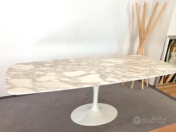 Tavolo tulip Eero Saarinen con piano in marmo calacatta oro , forma a botte 218 cm. X 108 cm. H. 75