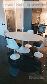 per informazioni tel 328 4276174 sig Sergio . Riproduzione Made in Italy del tavolo tulip, Piano: laminato liquido bianco o nero con bordo a becco d'oca spessore 2,5 cm. il piano in laminato liquido è disponbile in tutti i colori Ral(+15%). il laminato liquido è laccato con plastica liquida ad alta resistenza alle macchie ed hai graffi.