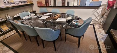 Vendesi tavolo modello stile tulip in vero marmo nero marquina con venature bianche, dimensioni cm 244x137, base in alluminio laccato nero Ottime condizioni Fatturabile con Iva esposta