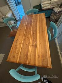 Bellissimo tavolo color turchese ricco di rifiniture. In aggiunta 4 sedie. Adatto a vari arredamenti Misure Tavolo 150x80x78 Misure Sedie 42x45x88