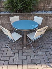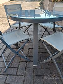 Vendo per trasloco bellissimo e comodo tavolo in alluminio e vetro con 4 sedie pieghevoli.