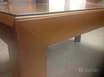 Tavolo allungabile in legno naturale di Noce con piano in vetro trasparente sp. mm.5. Misure tavolo : chiuso cm. L.160xP.90, aperto cm. L.220xP.90. Tavolo veramente bello e ben tenuto.