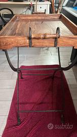 Tavolino vassoio in legno massiccio artigianale e ferro battuto le gambe si chiudono condizioni ottime