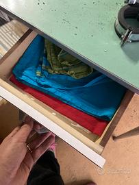 Ho deciso di fare spazio nel garage. Ho questo tavolo messo molto bene, lo avevo nel mio monolocale ma ora l ho sostituito. Come si puo vedere ha i cassetti perfetti. Il top ha dei segni perche avra’ 60 anni di vita se bastano. Lo trovo bello ed e’ funzionale. Lo si puo abbinare alle sedie che ho in un altro annuncio.