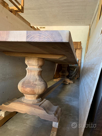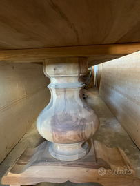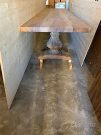 Tavolo in noce da salone: - lungo 4,2 metri - largo 1 metro - alto 80 centimetri. Spessore tavolo 7,5 centimetri. 2 gambe tornite + traverso centrale. Grezzo.