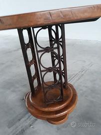 Tavolo usato in legno di noce, con base in ferro ricavata da vecchia inferriata