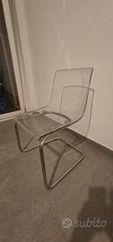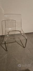 Vendo set da pranzo moderno IKEA, perfetto per sala da pranzo. Il set comprende: 1 Tavolo TORSBY: Piano in vetro temprato e struttura cromata. Misure 135x85 cm. Molto elegante e facile da pulire. 6 Sedie TOBIAS: Sedie trasparenti con base a slitta cromata. Design moderno e seduta confortevole in policarbonato. Ottime condizioni. Il vetro è integro e non scheggiato/graffiato. Le sedute delle sedie hanno normali segni di usura, ma sono integre e senza crepe. Trasporto e smontaggio a carico dell'acquirente Zona Chiasso