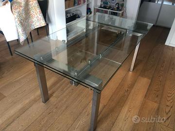 Tavolo di design in vetro e acciaio 160 x90 cm allungabile a 240x 90 ideale per cucina o sala da pranzo. Ritiro in Roma zona Pietralata/Monti Tiburtini