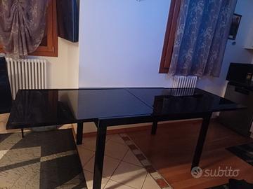 vendo bellissimo tavolo vetro allungabile, da chiuso ha 123/91 , aperto ha 246x91. Si vende con 4 sedie eco pelle.