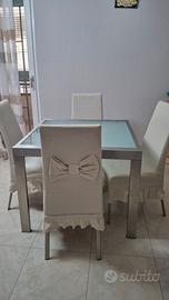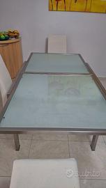 Vendo tavolo acciaio e vetro 90x90 allungabile a 180, incluse 4 sedie calligaris da tappezzare no spedisco