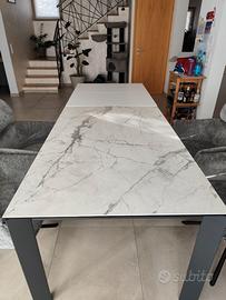 Tavolo allungabile in vetro e ceramica come nuovo, misura da chiuso 140x90 fino a 240. Gambe in metallo. Acquistato 3 anni fa da mobilificio. Visione senza impegno. Prezzo trattabile
