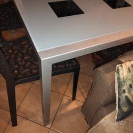 bellissimo tavolo in ferro argentato con vetro con motivi 1.30 x 70 il prezzo si riferisce al tavolo le sedie a parte chiesere per info