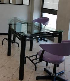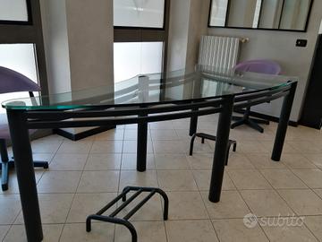 Per chiusura negozio vendo tavolo con piano cristallo e struttura metallo. Forma particolare disegnata da me. Ideale x negozio come esposizione o per reception. Era stato pensato per tavolo tecnico per parrucchiere. Non spedisco.