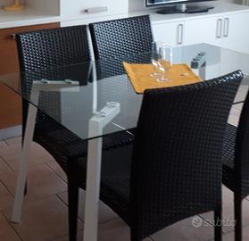 vendo tavolo vetro gambe metallo bianche usato pochissimo ha un supporto staccato, ma con un po' di apposita colla si sistema. Uso scrivania, tavolo pranzo, anche tavolo esterno...