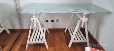 vendo tavolo in vetro Ikea pari nuovo, misure 148x73 con cavalletti in legno bianco