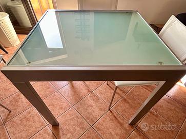Tavolo quadrato in alluminio e vetro allungabile 90 cm, in condizioni eccellenti.