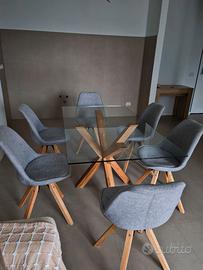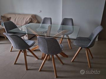 TAVOLO VETRO/ROVERE NATURALE E SEI SEDIE
