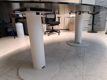 Vendesi tavolo da esposizione di un ufficio in vetro smaltato marrone con lunghezza 236 cm,larghezza nella parte piu' larga 118 cm ed altezza 73 cm con piedi di sostegno cilindrici bianchi tutto in ottimo stato! Misure,disegno dello stesso e prezzo iniziale di acquisto(senza iva)sono riportati nelle foto pubblicate Vendesi a 1250 eur Piu' set 5 sgabelli modello califfa con seggiola bianca in polipropilene ed intelaiatura in acciaio cromato tutti in ottimo stato usati come esposizione a 120 eur l'uno(prezzo di acquisto 350 eur ad articolo) Possibilita' di acquisto anche singoli