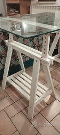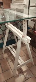 Tavolo in vetro temperato con scaffali rialzabili max altezza 95 minima 80 Larghezza 80 lunghezza 150 uno scaffale e da sistemare come si vede in foto trattabile di poco