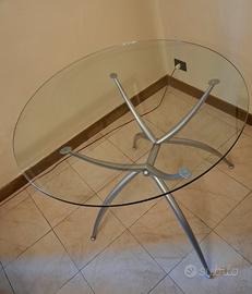 materiale: vetro (tavolo), acciaio (scheletro) diametro: 110cm altezza: 80cm