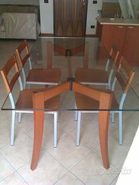 TAVOLO CON GAMBE A SCIABOLA IN VETRO COLOR CILIEGIO MIS. 1800X 900 OTTIMO E PRATICO COMPLEMENTO ARREDO.