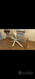 vendo tavolo in vetro mis. 200x100 causa trasloco . con gambe in legno laccato bianco