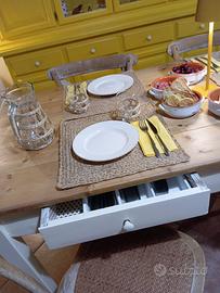 Tavolo vintage rettangolare fisso con piano e struttura in legno con 2 cassetti. Misura 160x80 h 80