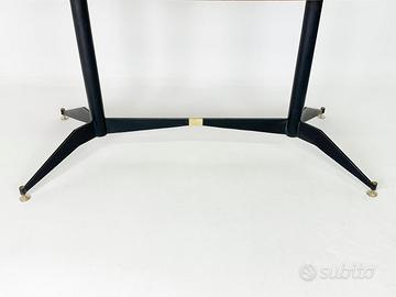 Tavolo di design anni 60 con piano in formica e gambe in acciaio verniciato nero. Inserti e piedini regolabili in ottone. In ottime condizioni come da foto. Possibilità di consegna a Milano e limitrofi.