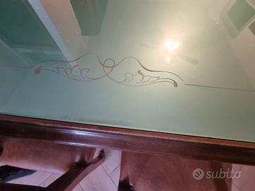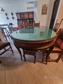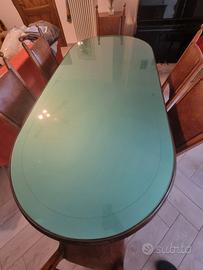 vendo tavolo legno 200x90 con vetro sopra vintage molto bello comprese 8 sedie artigianali in legno massello e rivestimento nuovo in pelle