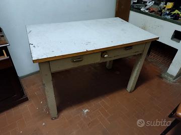 tavolo vintage anni 40/50 con piano in formica.. con mattarello , cassetto e anta ribaltabile.. sulle gambe ha la slitta per il piano in cui sis stendeva la pasta che però è mancante. condizioni accettabili visto l'età ma da dargli una sistemata generale.