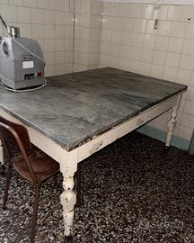 Vendo tavolo vintage con splendido piano in marmo scuro venato, spesso e di grande qualità. Si tratta di un tavolo robusto, ideale per cucine tradizionali, laboratori alimentari, panetterie, pasticcerie o come banco da lavoro.