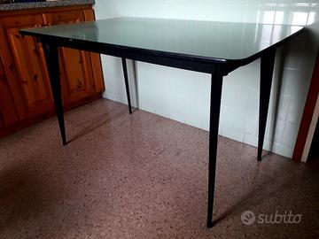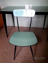 Set di tavolo e quattro sedie in formica verde acqua e gambe in metallo nero di ottima qualità. Utilizzati in una casa vacanze per diversi anni ma ben tenuti e in ottime condizioni.