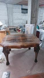 Tavolo vintage in legno massello con bordo sagomato e gambe finemente intagliate.