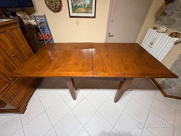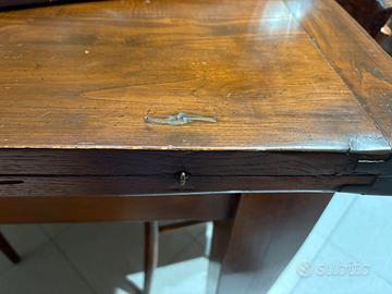 Vendo tavolo a libro realizzato in legno massello (noce). Le dimensioni da chiuso sono 100x100cm, all'occorrenza si puo aprire arrivando a 200x100cm. Realizzato tra gli anni ‘40 e ‘60