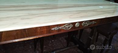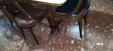 Tavolo vintage in legno piano in marmo con sedie
