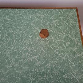 Piano in formica verde originale dell'epoca, con cassetto centrale.