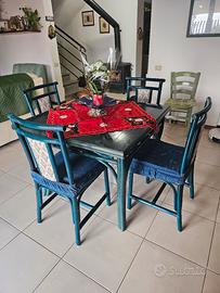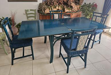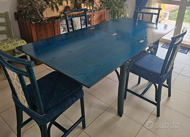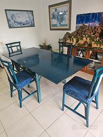 Tavolo vintage laccato blu con sedie
