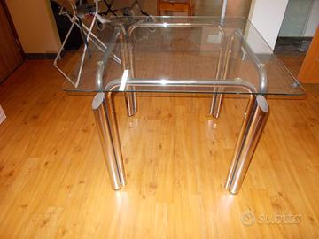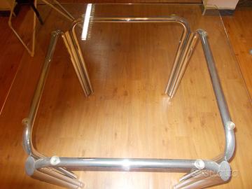 Tavolo Salotto/cucina, vintage . Fusto metallo cromato, Piano cristallo.