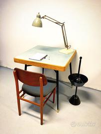 Vendo tavolo vintage quadrato, produzione italiana riconducibile alla fine anni ’50 / primi anni ’60. Struttura con gambe in ferro e puntali in ottone.