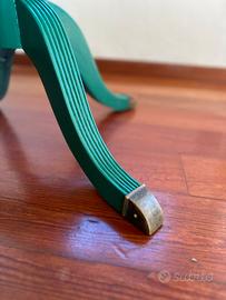 La base è in legno verniciato verde, stabile e robusta, con piedistallo centrale a quattro appoggi.