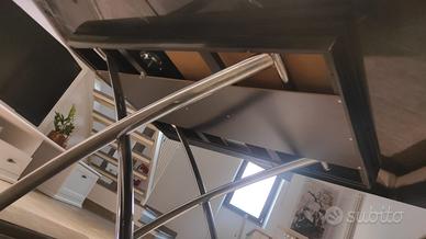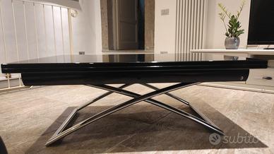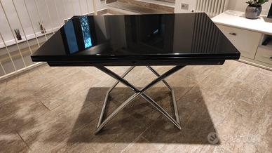 Tavolo Magic-j della ditta Calligaris, struttura in metallo e piano in vetro colore nero. Allungabile e regolabile in altezza.